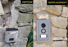 Chantier réalisé sur Nimes - Dépose d'un ancien interphone vidéo et remplacement avec bac d'encastrement par un modèle connecté avec transfert d'appel sur smartphone et commande à distance.